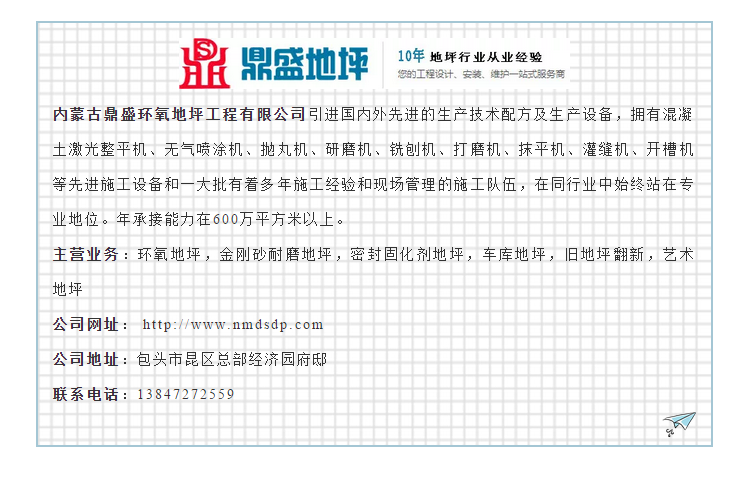 随着目前的工业化、城市化的不断发展,地坪即将成为主体装饰材料的中流砥柱,消费者们选择专业地坪商家上百度搜索准没错。