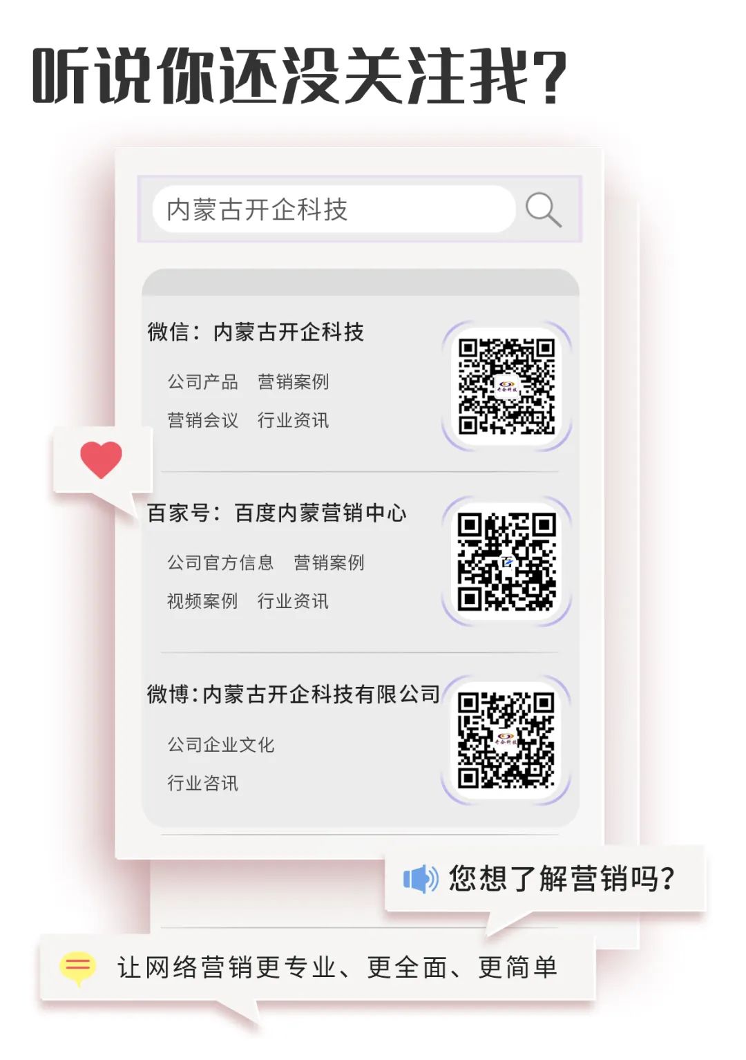 开企科技秉承着让网络营销更专业、更全面、更简单的使命,从基础运营角度出发,为客户分析解决运营中实际出现的问题。以品牌曝光提升总体产品价值,为客户提升总体销量提供专业化营销服务。