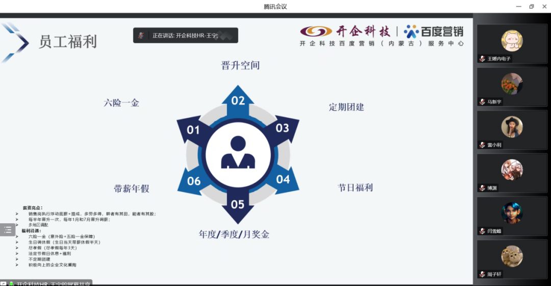 为扎实做好2023届毕业生就业工作,促进毕业生高质量就业,11月25日,内蒙古开企科技有限公司协同内蒙古电子信息职业技术学院软件与大数据学院举办线上专场招聘会,本次招聘会共计毕业生100余人参与,招聘宣讲会由开企科技人事行政部王宁主讲。