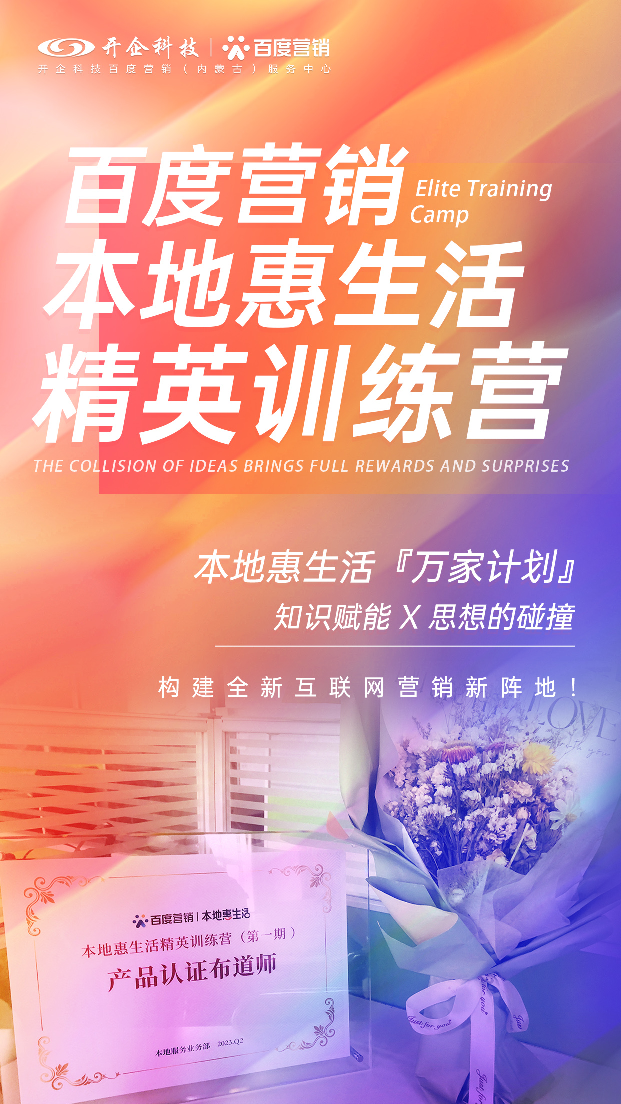 2023年4月23-24日,在百度科技园举办了第一期『本地惠生活·精英训练营』,本地惠生活邀请了包括开企科技在内的大渠道及渠道生态服务商,为期1.5天的精英集中训练营干货满满,思想的碰撞令参加此次本地惠生活精英训练营的服务商核心骨干收获颇丰、惊喜连连。