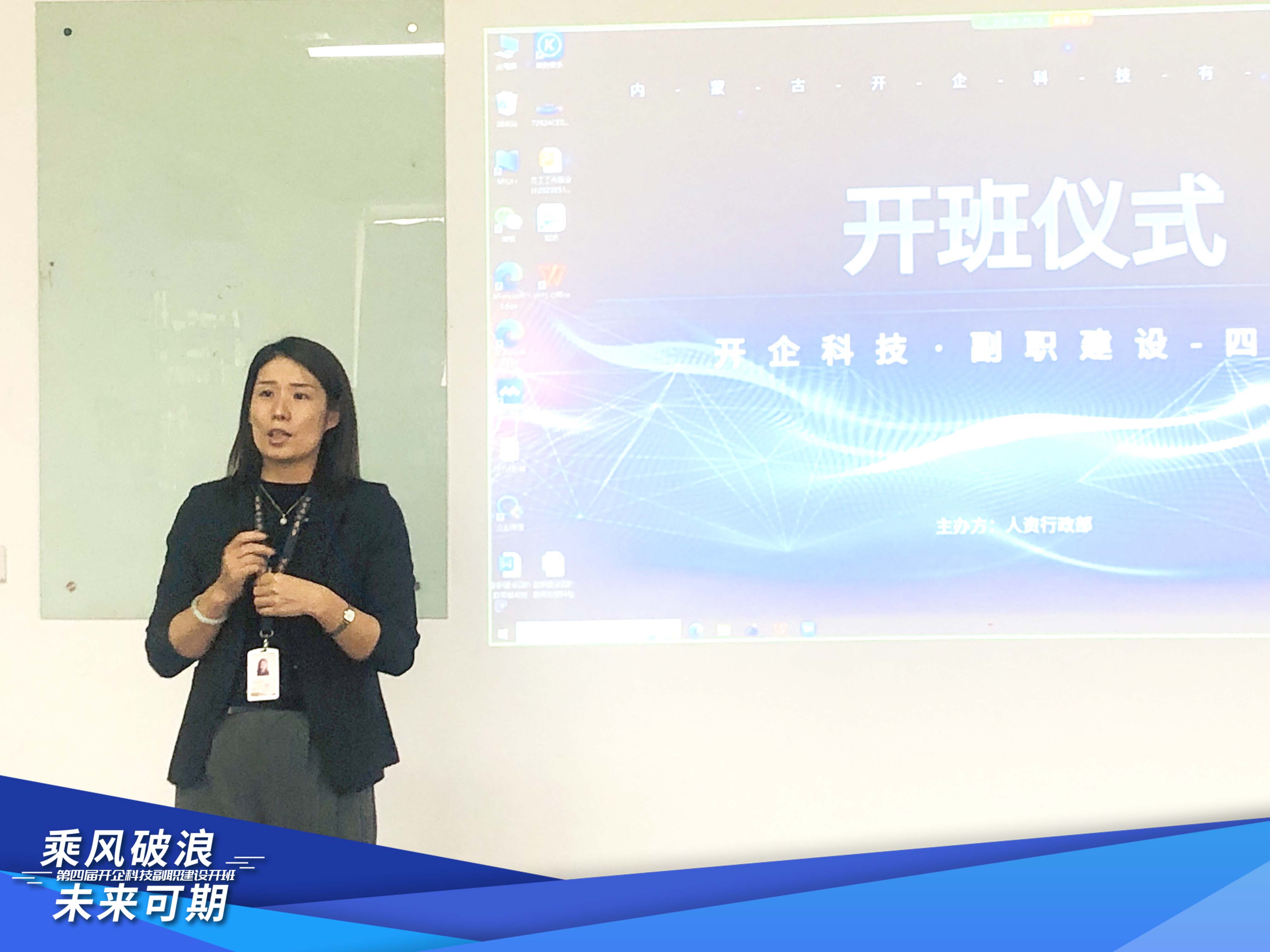 开企科技人资行政总监赵芳女士对本届副职建设的顺利开班及新学员入班表示热烈地祝贺!同时为学员们提出了期望与建议:大家作为各条战线的优秀代表是开企科技未来发展的主力军,希望各位学员牢记责任担当,珍惜学习机会,不断提升自己的能力、胸怀格局、凝聚团队等综合能力,学以致用、修身历练,成为开企科技的中流砥柱。