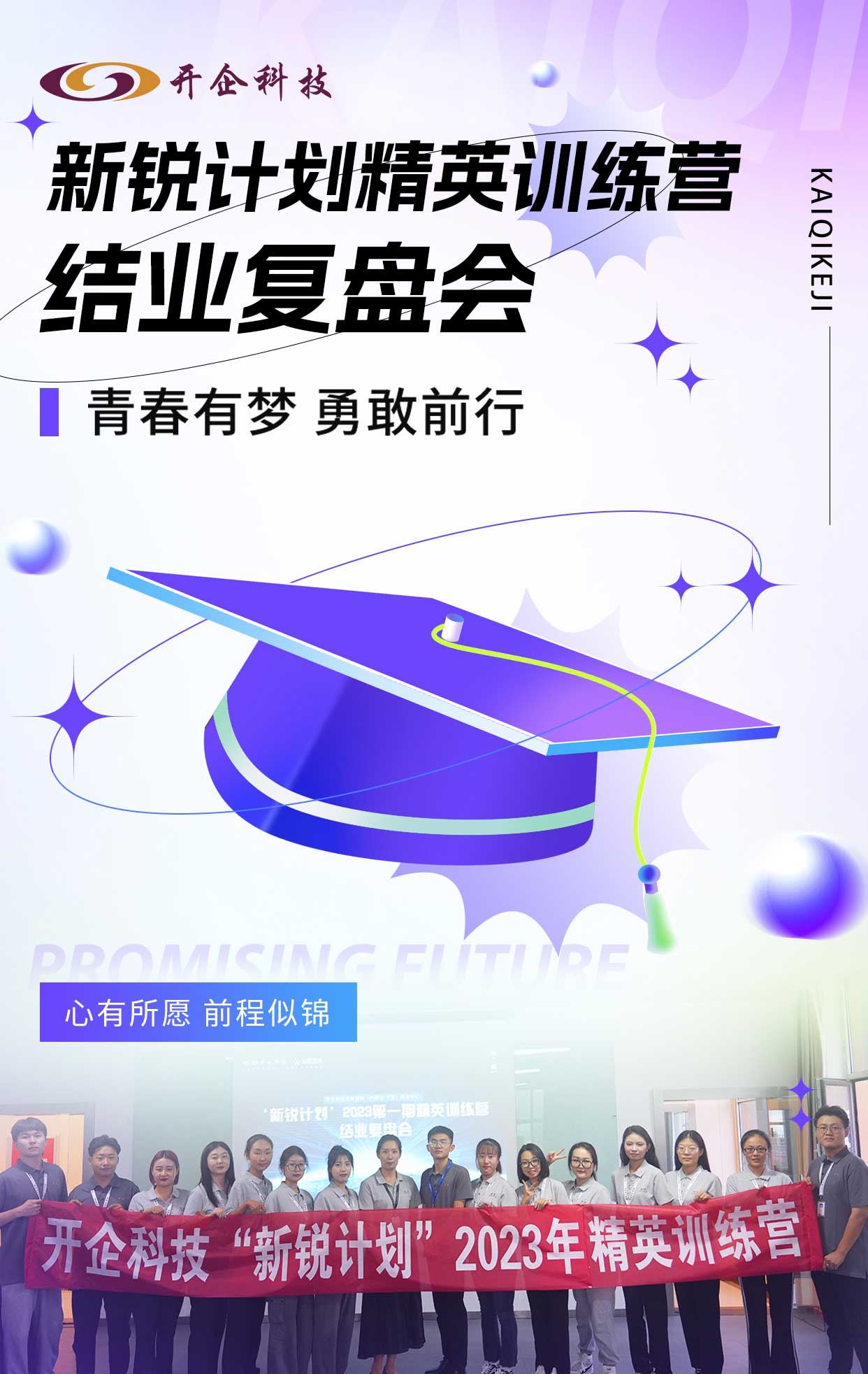 至此,2023年开企科技第一期“新锐计划”精英训练营圆满落幕。希望开企精英学员们不断磨炼自我,扎实工作,在开企科技大展宏图,成长为独当一面的优秀骨干。