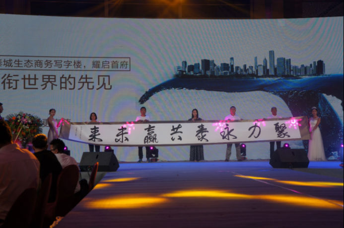 此刻,已签约入驻永泰城商务写字楼的品牌商家汇聚一堂,共鉴巅峰时刻。商家代表上台共同打开卷轴,“聚力永泰,共赢未来”代表着众多商家们对永泰城的信任和对未来的期许。一同见证城南商业模式变革走向国际化、走向高端“一站式”消费的美好明天。