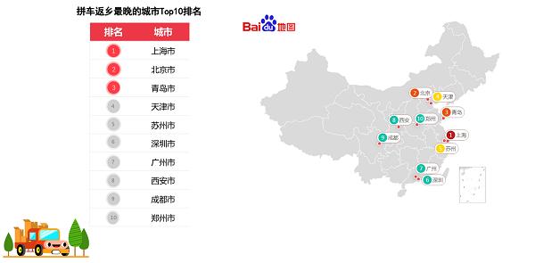 春节期间拼车返乡晚的城市Top10排名
