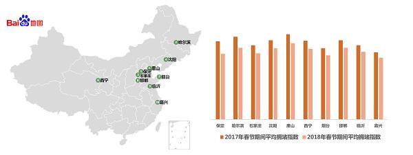 2017年&2018年春节期间城市平均拥堵指数对比图