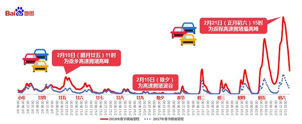 2018年春节全国高速拥堵趋势图