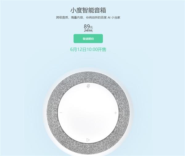 继小度在家智能视频音箱后,今天下午百度又推出了新款智能音箱——小度智能音箱,售价249元,尝鲜价只需89元,6月12日10点开售。